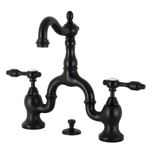 Original price $1,189.95 - Original price $1,189.95Original price $1,189.95$1,189.95$1,189.95 - $1,189.95Current price $1,189.95| /Kingston Heirloom KS7970TAL - Tudor Two-Handle 3-Hole Deck Mount Bridge Bathroom Faucet with Brass Pop-Up, Matte Black