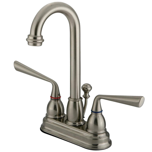 Original price $274.95Original price $274.95 - Original price $274.95Original price $274.95Current price $206.21$206.21 - $206.21Current price $206.21| /Kingston Tulare KB3618ZL - Silver Sage Double-Handle 3-Hole Deck Mount 4-Inch Centerset Bathroom Faucet with Pop-Up Drain, Brushed Nickel