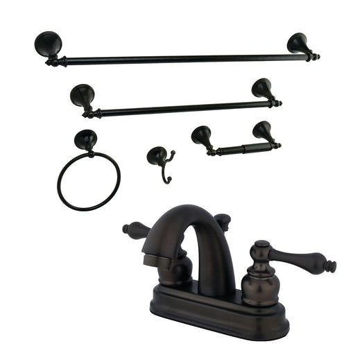 Kingston BrassKingston Heirloom KBK5615ALDouble-Handle 3-Hole Deck Mount 4-Inch Centerset Bathroom Faucet with 5-Piece Bathroom Accessories Kit, Oil Rubbed Bron...
