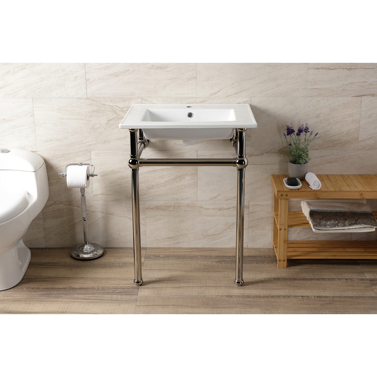 Kingston Heirloom KVBH252276 - Templeton 25-Inch Ceramic Console Sink with Brass Legs (1-Hole), White/Polished Nickel