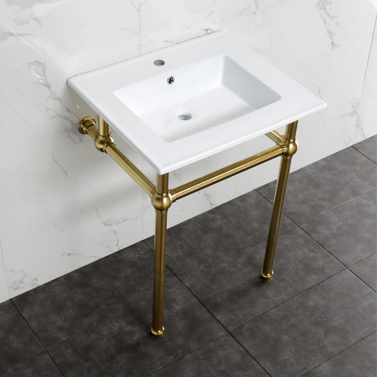 Kingston Heirloom KVBH252277 - Templeton 25-Inch Ceramic Console Sink with Brass Legs (1-Hole), White/Brushed Brass