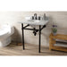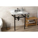 Kingston Heirloom KVBH3022M85 - Templeton 30-Inch Carrara Marble Console Sink with Brass Legs (8-Inch, 3-Hole), Carrara Marble White/Oil Rubbed Bronze