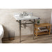 Kingston Heirloom KVBH3022M86 - Templeton 30-Inch Carrara Marble Console Sink with Brass Legs (8-Inch, 3-Hole), Carrara Marble White/Polished Nickel