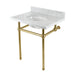 Kingston Heirloom KVBH3022M87 - Templeton 30-Inch Carrara Marble Console Sink with Brass Legs (8-Inch, 3-Hole), Carrara Marble White/Brushed Brass