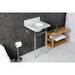 With a beautiful Carrara Marble counter top, this console sink set is a long lasting, durable, and elegant addition to your bathroom. A fabulous alternative where space is limited or tight, making them friendly for the whole family. With different shades and natural designs, otherwise known as veining, no two sinks will be alike. Also for your convenience, anti-slip rubber pads are included with the brass legs to ensure steadiness. Water supply kit, drain assembly, and the faucet are sold separately. Kingston's Carrara Marble tops are polished, but they are not sealed. Polished marble has a shiny surface and resists stains. Natural stone, even when polished, is still somewhat porous and does remain susceptible to etching by acidic compounds like fruit juice, vinegar, some cleaning solvents, etc. For customers that wish to further protect their investment the marble can be sealed. The following is intended solely for informational purposes. Kingston does not warranty nor accept liability for damages or other negative outcomes resulting from any treatment or coating applied to the countertop after purchase, whether applied by the customer or by a third party. For anyone unfamiliar with this nature of project, Kingston recommends consulting an experienced professional in your area. When looking for a sealant product, please be sure to seek a product specifically designed for use on polished marble, granite or other natural stone surfaces. Be sure to always avoid anything containing a citrus ingredient, acid ingredient, tung oil, linseed oil, or other natural oils. These can damage or discolor your marble.