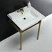 Kingston Tulare KVPB25227W47 - Dreyfuss 25-Inch Ceramic Console Sink with Stainless Steel Legs (4-Inch, 3-Hole), White/Brushed Brass