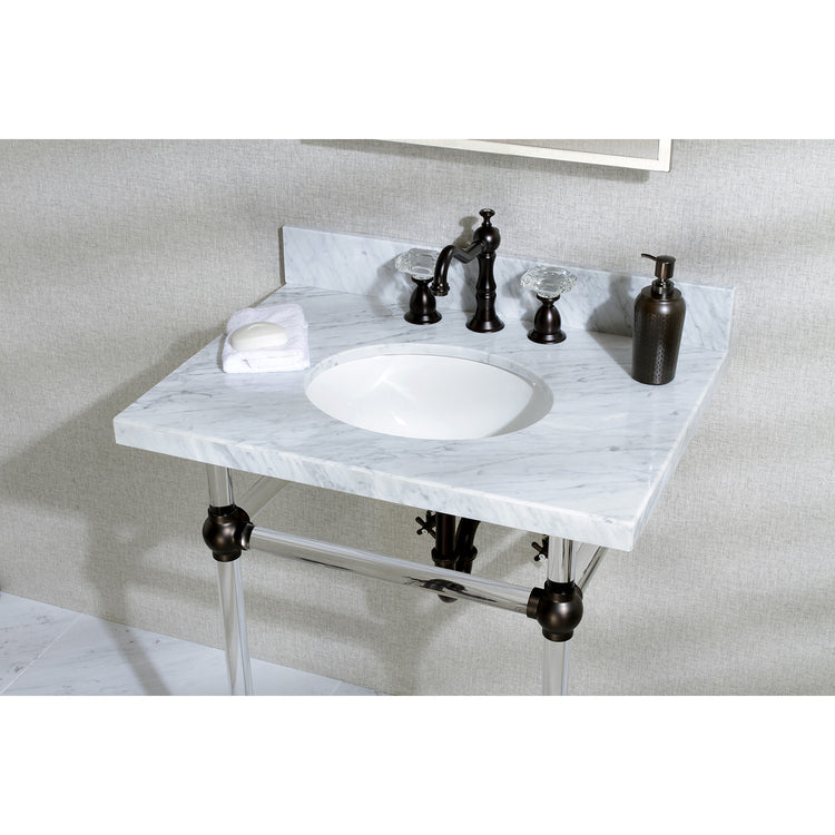 Kingston Tulare KVPB30MA5 - Templeton 30-Inch Carrara Marble Vanity Top with Acrylic Legs (8-Inch, 3-Hole), Carrara Marble White/Oil Rubbed Bronze
