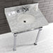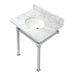 Kingston Sona KVPB30MOQ1 - Monarch 30-Inch Carrara Marble Console Sink with Stainless Steel Legs (8-Inch, 3-Hole), Carrara Marble White/Polished Chrome