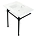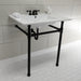 Kingston Tulare KVPB31227W40 - Dreyfuss 31-Inch Ceramic Console Sink with Stainless Steel Legs (4-Inch, 3-Hole), White/Matte Black