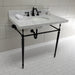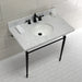 Kingston Heirloom KVPB3622M80 - Edwardian 36-Inch Carrara Marble Console Sink with Brass Legs (8-Inch, 3-Hole), Carrara Marble White/Matte Black