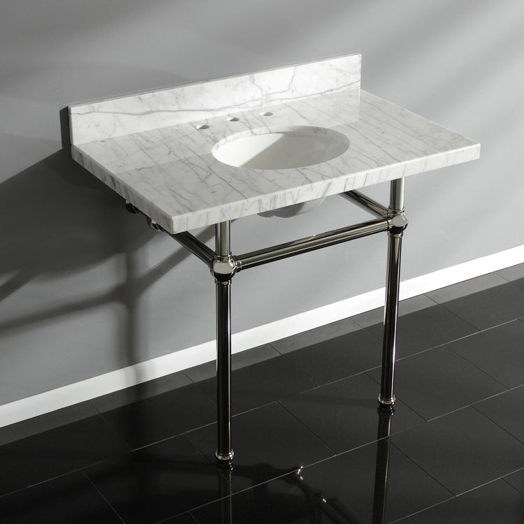 Kingston Heirloom KVPB3630MB6 - Templeton 36-Inch Carrara Marble Vanity Top with Brass Legs (8-Inch, 3-Hole), Carrara Marble White/Polished Nickel