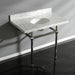 With a beautiful Carrara Marble counter top, this console sink set is a long lasting, durable, and elegant addition to your bathroom. A fabulous alternative where space is limited or tight, making them friendly for the whole family. With different shades and natural designs, otherwise known as veining, no two sinks will be alike. Also for your convenience, anti-slip rubber pads are included with the brass legs to ensure steadiness. Water supply kit, drain assembly, and the faucet are sold separately. Kingston's Carrara Marble tops are polished, but they are not sealed. Polished marble has a shiny surface and resists stains. Natural stone, even when polished, is still somewhat porous and does remain susceptible to etching by acidic compounds like fruit juice, vinegar, some cleaning solvents, etc. For customers that wish to further protect their investment the marble can be sealed. The following is intended solely for informational purposes. Kingston does not warranty nor accept liability for damages or other negative outcomes resulting from any treatment or coating applied to the countertop after purchase, whether applied by the customer or by a third party. For anyone unfamiliar with this nature of project, Kingston recommends consulting an experienced professional in your area. When looking for a sealant product, please be sure to seek a product specifically designed for use on polished marble, granite or other natural stone surfaces. Be sure to always avoid anything containing a citrus ingredient, acid ingredient, tung oil, linseed oil, or other natural oils. These can damage or discolor your marble.