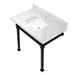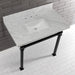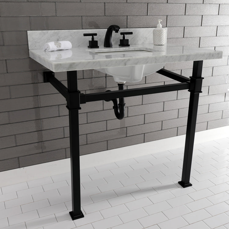 Kingston Sona KVPB36MSQ0 - Monarch 36-Inch Carrara Marble Console Sink with Stainless Steel Legs (8-Inch, 3-Hole), Carrara Marble White/Matte Black