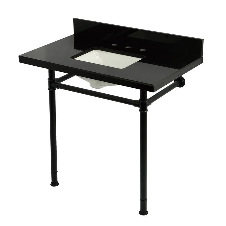 Kingston Tulare KVPK36227K380 - Imperial 36-Inch Black Granite Console Sink with Stainless Steel Legs (8-Inch, 3-Hole), Black Granite/Matte Black