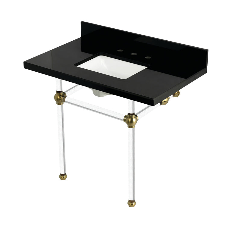Kingston Tulare KVPK3630KASQ7 - Templeton 36-Inch Black Granite Console Sink with Acrylic Legs (8-Inch, 3-Hole), Black Granite/Brushed Brass