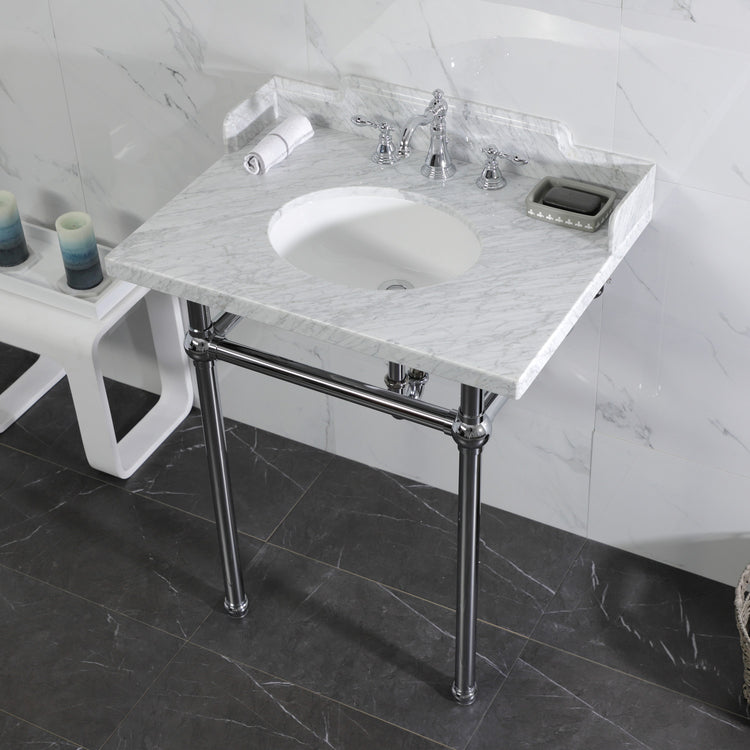 Kingston Heirloom LMS30MB1 - Pemberton 30-Inch Carrara Marble Console Sink with Brass Legs (8-Inch, 3-Hole), Carrara Marble White/Polished Chrome