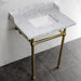 With a beautiful Carrara Marble counter top, this console sink set is a long lasting, durable, and elegant addition to your bathroom. A fabulous alternative where space is limited or tight, making them friendly for the whole family. With different shades and natural designs, otherwise known as veining, no two sinks will be alike. Also for your convenience, anti-slip rubber pads are included with the brass legs to ensure steadiness. Water supply kit, drain assembly, and the faucet are sold separately. Kingston's Carrara Marble tops are polished, but they are not sealed. Polished marble has a shiny surface and resists stains. Natural stone, even when polished, is still somewhat porous and does remain susceptible to etching by acidic compounds like fruit juice, vinegar, some cleaning solvents, etc. For customers that wish to further protect their investment the marble can be sealed. The following is intended solely for informational purposes. Kingston does not warranty nor accept liability for damages or other negative outcomes resulting from any treatment or coating applied to the countertop after purchase, whether applied by the customer or by a third party. For anyone unfamiliar with this nature of project, Kingston recommends consulting an experienced professional in your area. When looking for a sealant product, please be sure to seek a product specifically designed for use on polished marble, granite or other natural stone surfaces. Be sure to always avoid anything containing a citrus ingredient, acid ingredient, tung oil, linseed oil, or other natural oils. These can damage or discolor your marble.