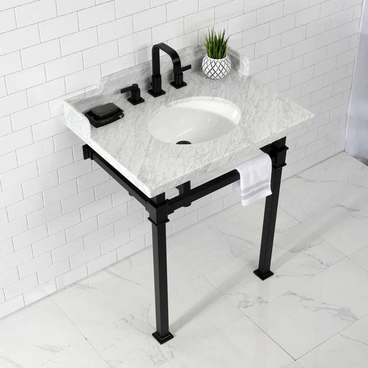 Kingston Sona LMS30MOQ0 - Viceroy 30-Inch Carrara Marble Console Sink with Stainless Steel Legs (8-Inch, 3-Hole), Carrara Marble White/Matte Black