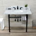 Kingston Tulare LMS3622M80ST - Wesselman 36-Inch Carrara Marble Console Sink with Stainless Steel Legs (8-Inch, 3-Hole), Carrara Marble White/Matte Black