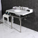 With a beautiful Carrara Marble counter top, this console sink set is a long lasting, durable, and elegant addition to your bathroom. A fabulous alternative where space is limited or tight, making them friendly for the whole family. With different shades and natural designs, otherwise known as veining, no two sinks will be alike. Also for your convenience, anti-slip rubber pads are included with the brass legs to ensure steadiness. Water supply kit, drain assembly, and the faucet are sold separately. Kingston's Carrara Marble tops are polished, but they are not sealed. Polished marble has a shiny surface and resists stains. Natural stone, even when polished, is still somewhat porous and does remain susceptible to etching by acidic compounds like fruit juice, vinegar, some cleaning solvents, etc. For customers that wish to further protect their investment the marble can be sealed. The following is intended solely for informational purposes. Kingston does not warranty nor accept liability for damages or other negative outcomes resulting from any treatment or coating applied to the countertop after purchase, whether applied by the customer or by a third party. For anyone unfamiliar with this nature of project, Kingston recommends consulting an experienced professional in your area. When looking for a sealant product, please be sure to seek a product specifically designed for use on polished marble, granite or other natural stone surfaces. Be sure to always avoid anything containing a citrus ingredient, acid ingredient, tung oil, linseed oil, or other natural oils. These can damage or discolor your marble.
