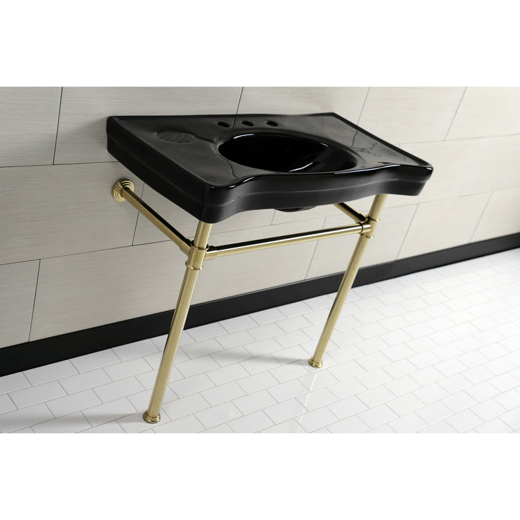 Kingston Tulare VPB136K7ST - Imperial 36-Inch Ceramic Console Sink with Stainless Steel Legs (8-Inch, 3-Hole), Black/Brushed Brass
