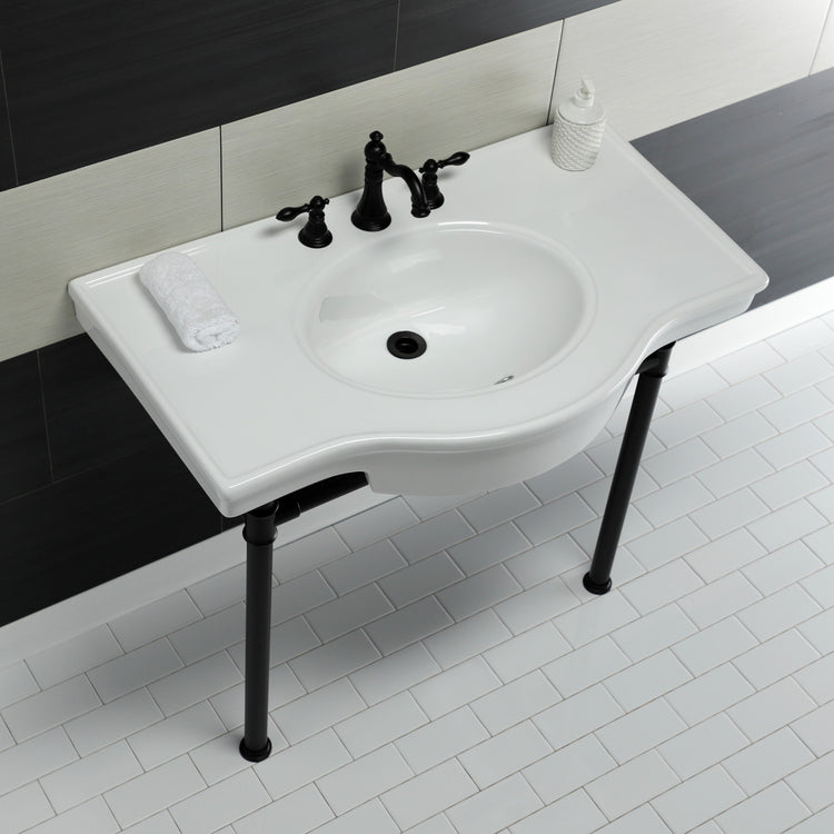 Kingston Tulare VPB1370ST - Templeton 37-Inch Ceramic Console Sink with Stainless Steel Legs (8-Inch, 3-Hole), White/Matte Black