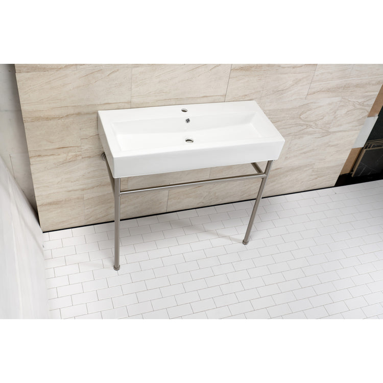 Kingston Sona VPB39178ST - New Haven 39-Inch Porcelain Console Sink with Stainless Steel Legs (1-Hole), White/Brushed Nickel