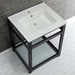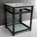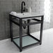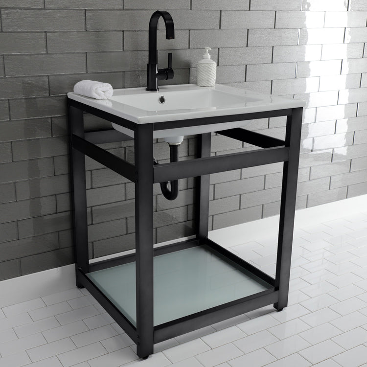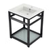 Kingston Quadras VWP2522B0 25-Inch Ceramic Console Sink with Steel Base and Glass Shelf (1-Hole), White/Matte Black