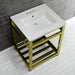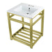 Kingston Sona VWP2522W4A7 - Quadras 25-Inch Ceramic Console Sink with Steel Base and Shelf (4-Inch, 3-Hole), White/Brushed Brass