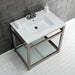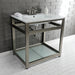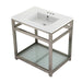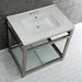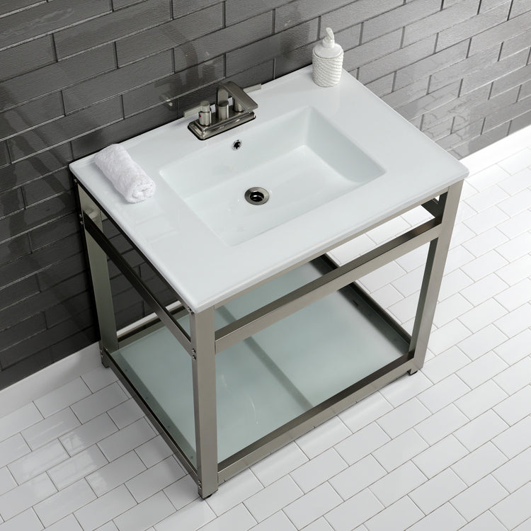 Kingston Sona VWP3122W4B8 - Quadras 31-Inch Ceramic Console Sink with Steel Base and Glass Shelf (4-Inch, 3-Hole), White/Brushed Nickel