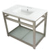 Kingston Quadras VWP3722W4B8 37-Inch Ceramic Console Sink with Steel Base and Glass Shelf (4-Inch, 3-Hole), White/Brushed Nickel