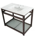 Kingston Quadras VWP3722W8B5 37-Inch Ceramic Console Sink with Steel Base and Glass Shelf (8-Inch, 3-Hole), White/Oil Rubbed Bronze