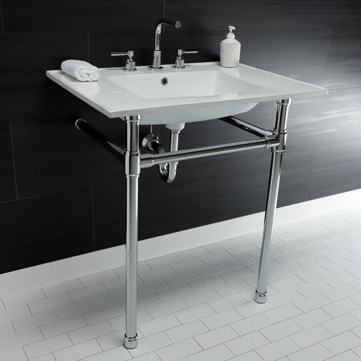 Kingston BrassKingston Tulare KVPB31227W81 - Dreyfuss 31-Inch Ceramic Console Sink with Stainless Steel Legs (8-Inch, 3-Hole), White/Polished Chrome With a be...