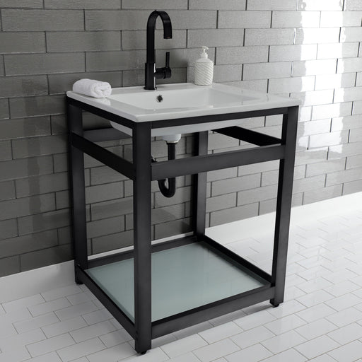Original price $1,129.85Original price $1,129.85 - Original price $1,129.85Original price $1,129.85Current price $847.39$847.39 - $847.39Current price $847.39| /Kingston Quadras VWP2522B0 25-Inch Ceramic Console Sink with Steel Base and Glass Shelf (1-Hole), White/Matte Black