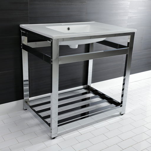 Kingston BrassKingston Sona VWP3122A1 - Quadras 31-Inch Ceramic Console Sink with Steel Base and Shelf (1-Hole), White/Chrome Exquisitely styled for your cont...