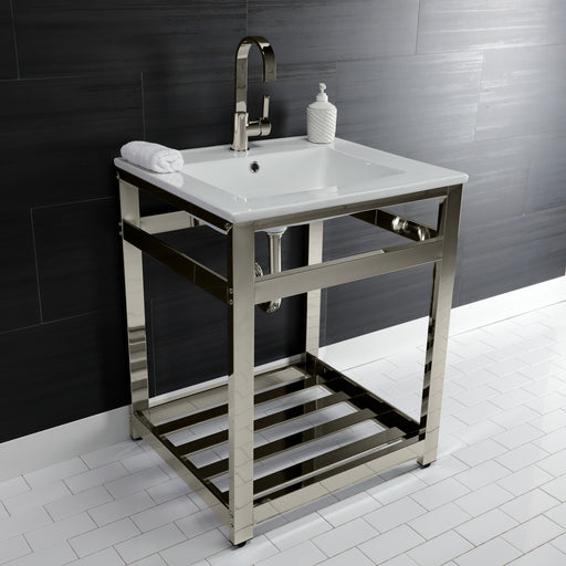 Original price $979.85Original price $979.85 - Original price $979.85Original price $979.85Current price $734.89$734.89 - $734.89Current price $734.89| /Kingston Sona VWP2522A6 - Quadras 25-Inch Ceramic Console Sink with Steel Base and Shelf (1-Hole), White/Polished Nickel