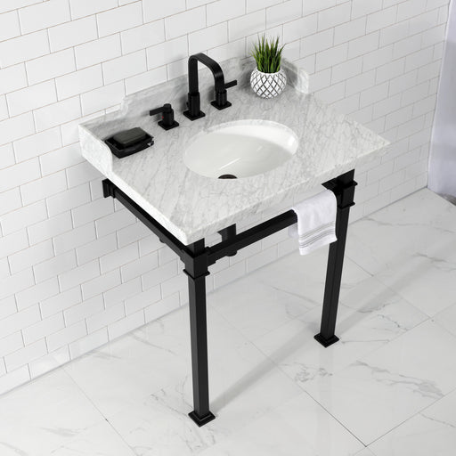 Kingston BrassKingston Sona LMS30MOQ0 - Viceroy 30-Inch Carrara Marble Console Sink with Stainless Steel Legs (8-Inch, 3-Hole), Carrara Marble White/Matte Black...