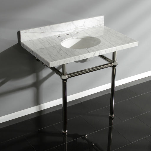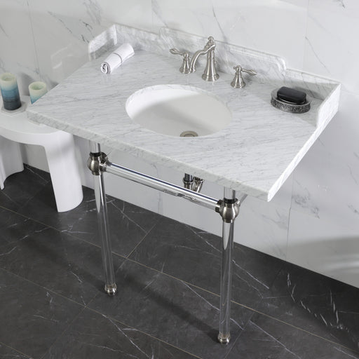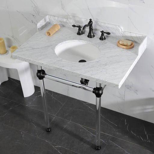 Kingston BrassKingston Sona LMS30MOQ1 - Viceroy 30-Inch Carrara Marble Console Sink with Stainless Steel Legs (8-Inch, 3-Hole), Carrara Marble White/Polished Ch...