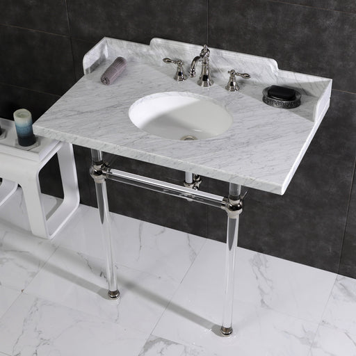 Kingston BrassKingston Tulare LMS36MA6 - Pemberton 36-Inch Carrara Marble Console Sink with Acrylic Legs (8-Inch, 3-Hole), Carrara Marble White/Polished Nickel ...