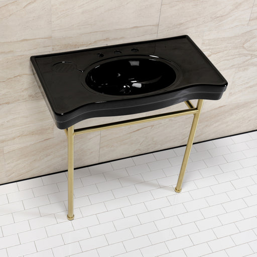 Original price $1,404.90Original price $1,404.90 - Original price $1,404.90Original price $1,404.90Current price $1,053.68$1,053.68 - $1,053.68Current price $1,053.68| /Kingston Tulare VPB28140W87K - Bristol 36-Inch Ceramic Console Sink with Stainless Steel Legs (8-Inch, 3-Hole), Black/Brushed Brass