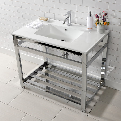 Kingston BrassKingston Quadras VWP3722A1 37-Inch Ceramic Console Sink with Steel Base and Shelf (1-Hole), White/Polished Chrome Exquisitely styled for your co...