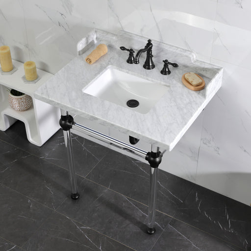 Kingston BrassKingston Tulare LMS3030MASQ0 - Pemberton 30-Inch Carrara Marble Console Sink with Acrylic Legs (8-Inch, 3-Hole), Carrara Marble White/Matte Black ...
