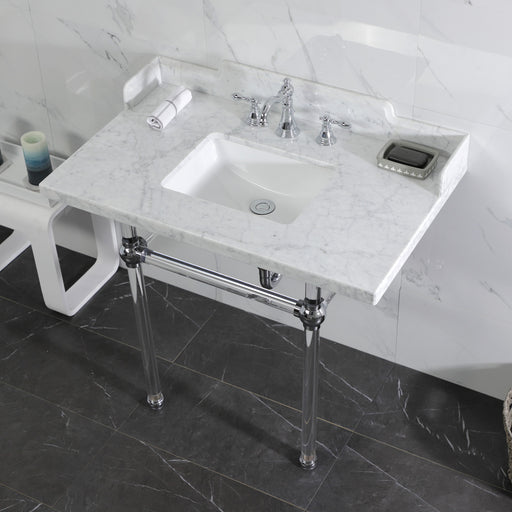 Kingston BrassKingston Tulare LMS3630MASQ1 - Pemberton 36-Inch Carrara Marble Console Sink with Acrylic Legs (8-Inch, 3-Hole), Carrara Marble White/Polished Chr...