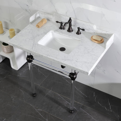 Kingston BrassKingston Tulare LMS3622M86ST - Wesselman 36-Inch Carrara Marble Console Sink with Stainless Steel Legs (8-Inch, 3-Hole), Carrara Marble White/Poli...