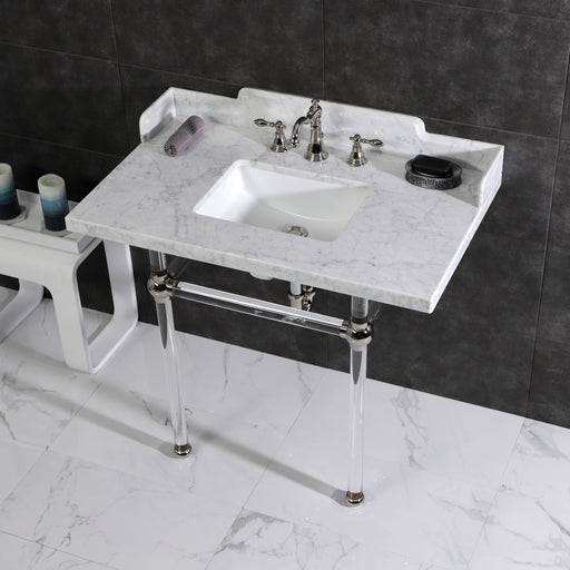 Kingston BrassKingston Tulare LMS3630MASQ6 - Pemberton 36-Inch Carrara Marble Console Sink with Acrylic Legs (8-Inch, 3-Hole), Carrara Marble White/Polished Nic...