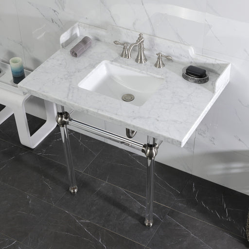 Kingston BrassKingston Tulare LMS3630MASQ8 - Pemberton 36-Inch Carrara Marble Console Sink with Acrylic Legs (8-Inch, 3-Hole), Carrara Marble White/Brushed Nick...