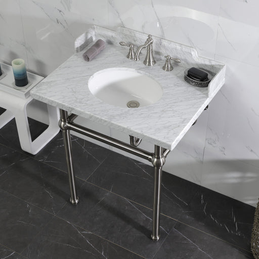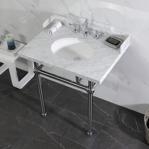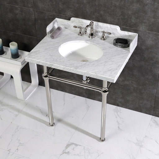Kingston BrassKingston Tulare LMS30M8SQ1ST - Wesselman 30-Inch Carrara Marble Console Sink with Stainless Steel Legs (8-Inch, 3-Hole), Carrara Marble White/Poli...