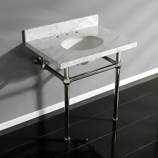 Kingston BrassKingston Tulare KVPB30M87ST - Dreyfuss 30-Inch Carrara Marble Vanity Top with Stainless Steel Legs (8-Inch, 3-Hole), Carrara Marble White/Brushed ...