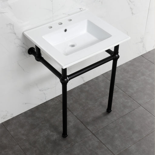 Kingston BrassKingston Heirloom KVBH25227W8B0 - Templeton 25-Inch Ceramic Console Sink with Brass Legs (8-Inch, 3-Hole), White/Matte Black With a beautiful ce...