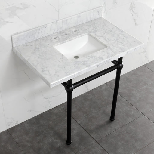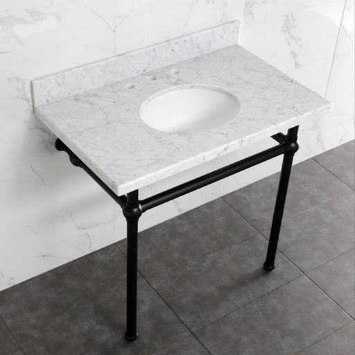 Kingston BrassKingston Heirloom KVBH3622M80 - Templeton 36-Inch Carrara Marble Console Sink with Brass Legs (8-Inch, 3-Hole), Carrara Marble White/Matte Black ...